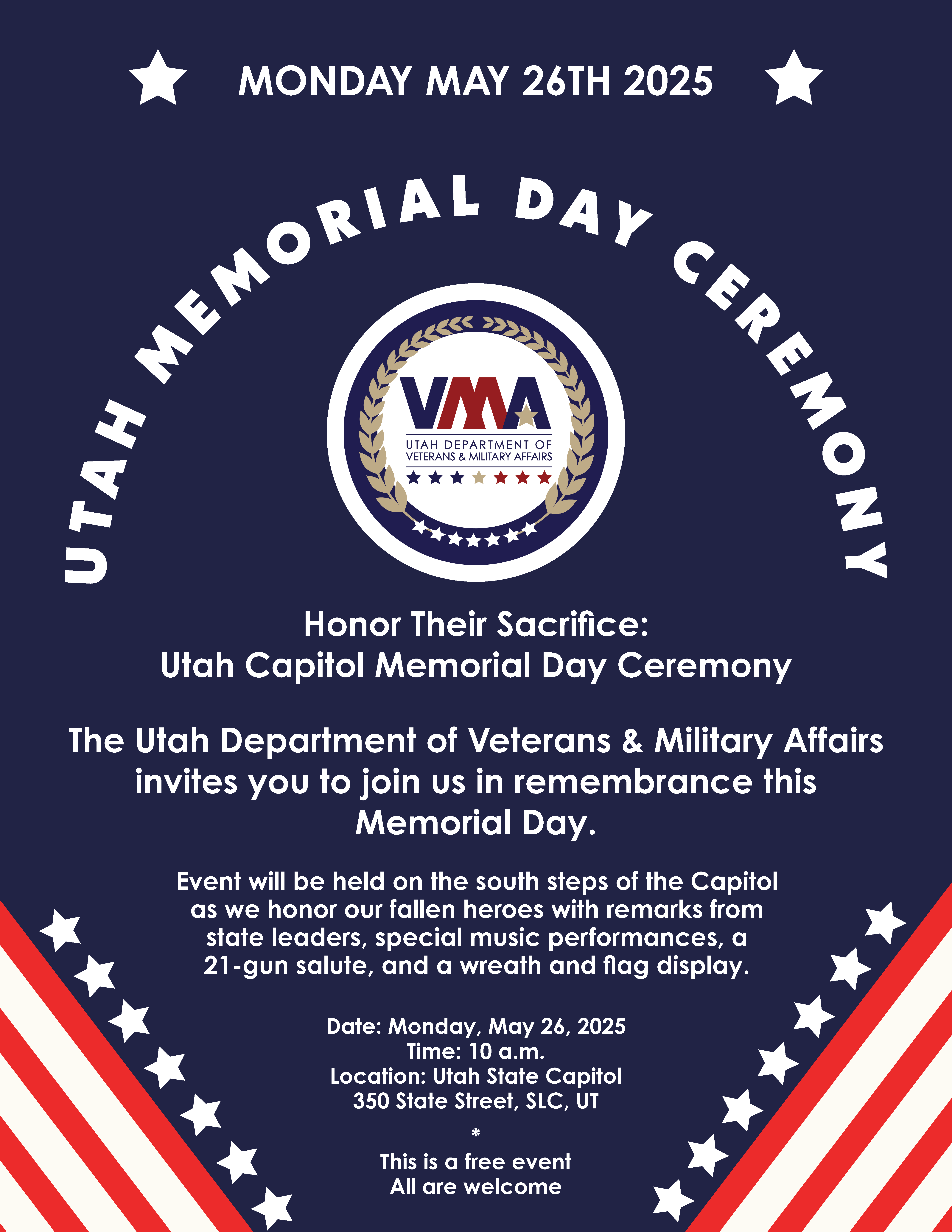 The event will be held on the south steps of the Capitol. We will honor our fallen heroes with remarks from state leaders, special music performances, a 21-gun salute, and a wreath and flag display.